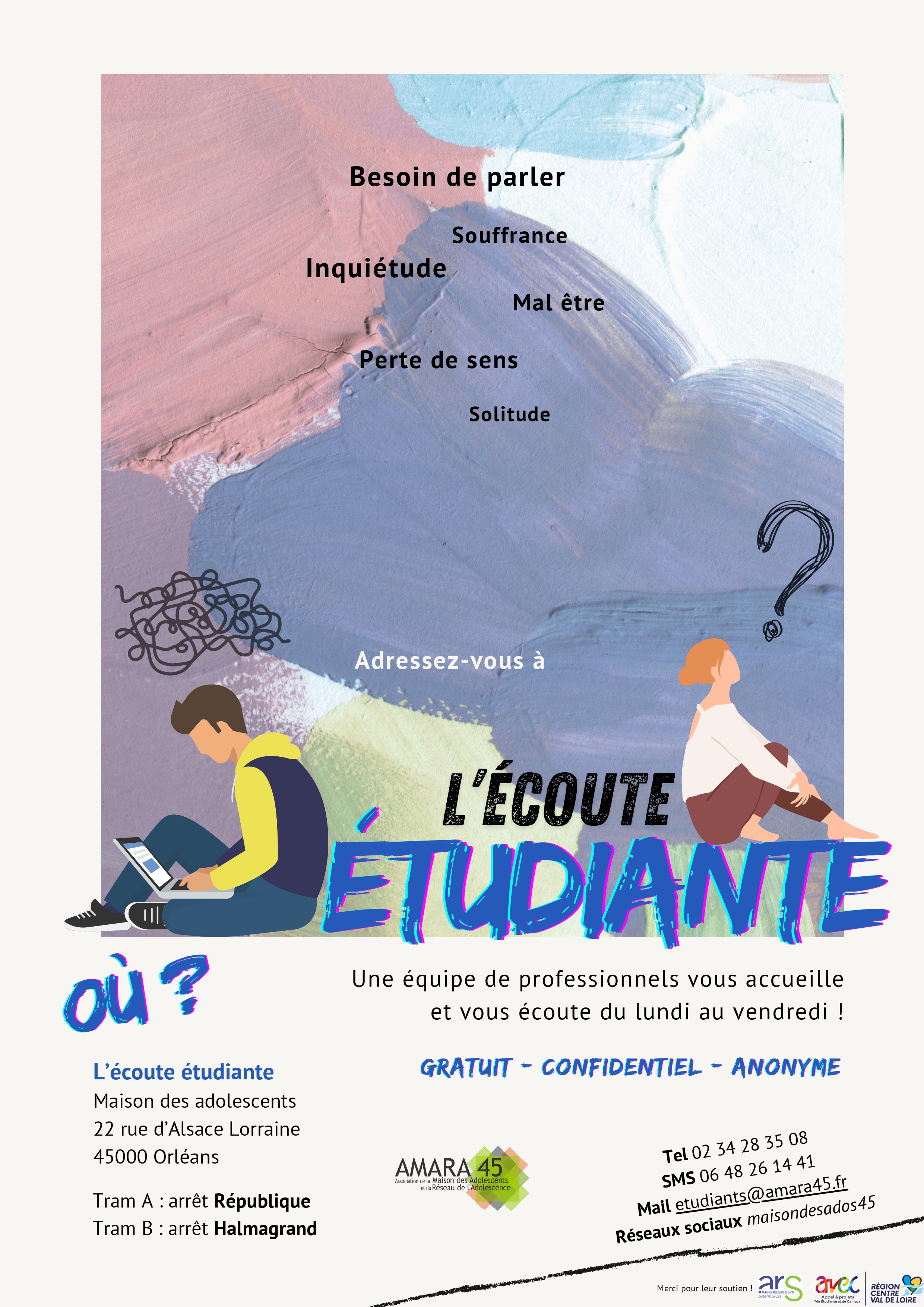 Ici, n’importe quel jeune de 11 à 25 ans peut venir parler de ce qui le préoccupe : angoisse, stress, petit ou gros souci… sans jugement.