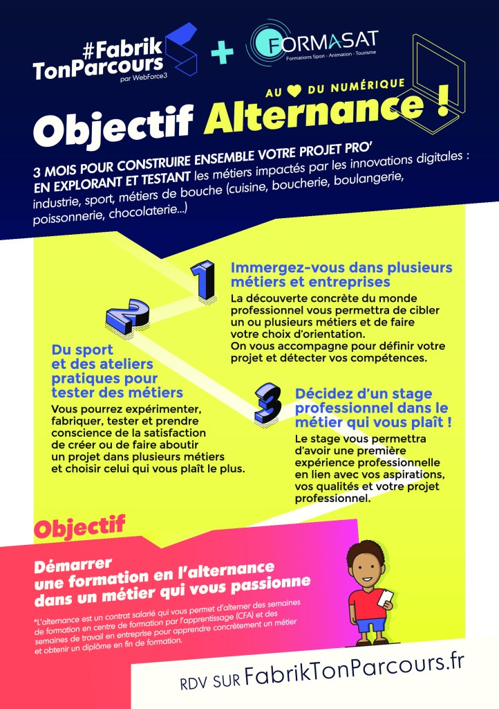Le programme les accompagne dans la découverte de métiers impactés par les innovations digitales, et dans le développement de compétences utiles à l’avancement de leurs projets professionnels.