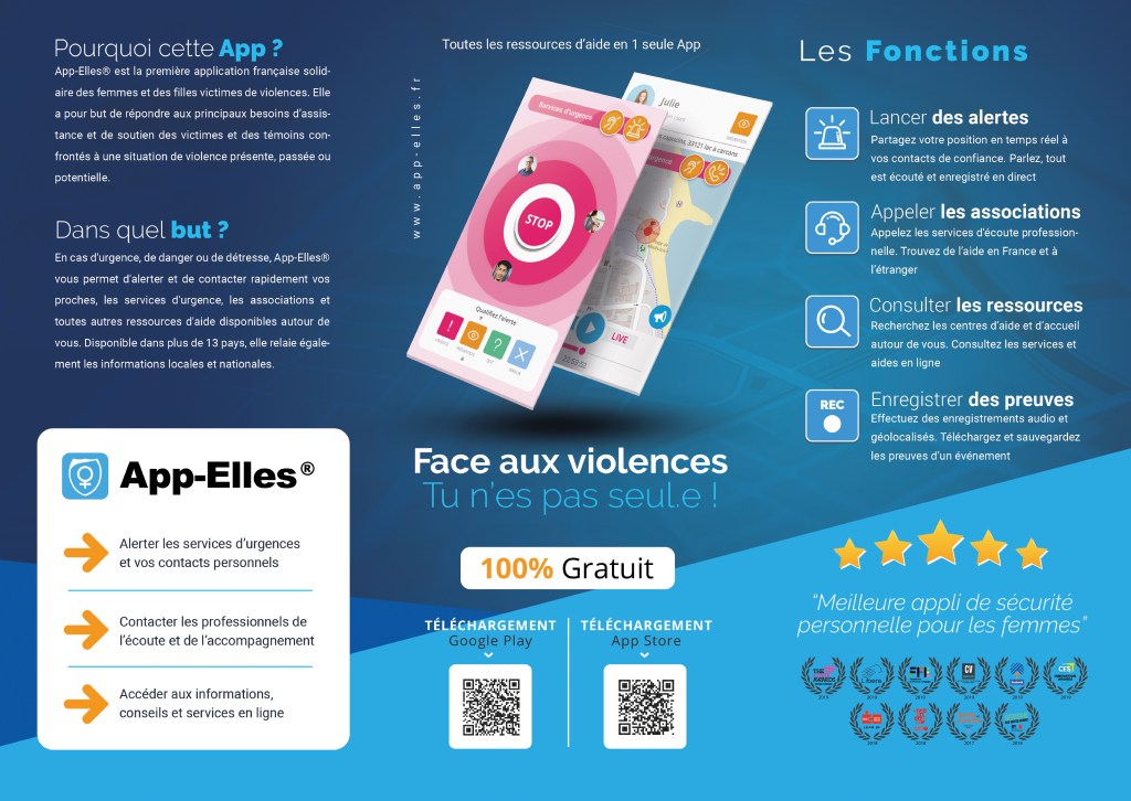 L’application mobile pour les victimes et témoins de violences sexistes et sexuelles. https://www.app-elles.fr/