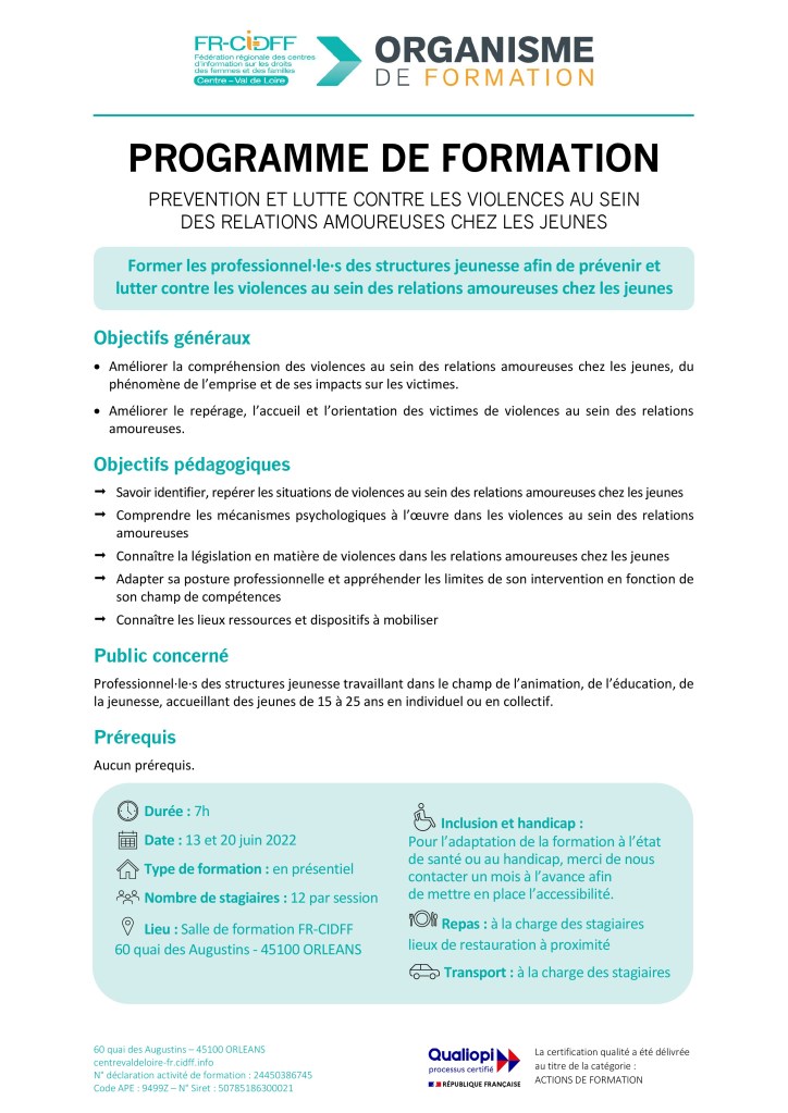 Le CIDFF propose un programme de formation, destiné aux professionnels travaillant auprès de jeunes de 15 à 25 ans dans les champs de l’animation, de l’éducation et de la jeunesse.