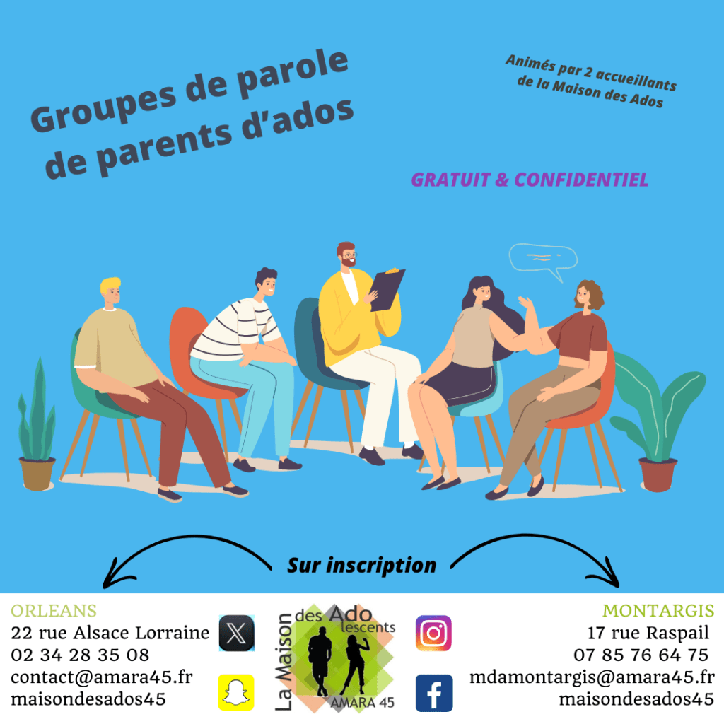 Le groupe de parole de parents d’ados se déroule de 18h15 à 20h00.