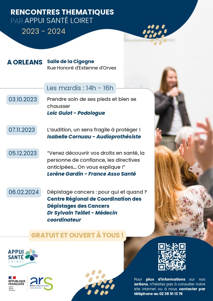 APPUI SANTE LOIRET propose des rencontres thématiques gratuites et ouvertes à tous dont voici les dates :