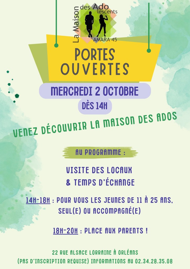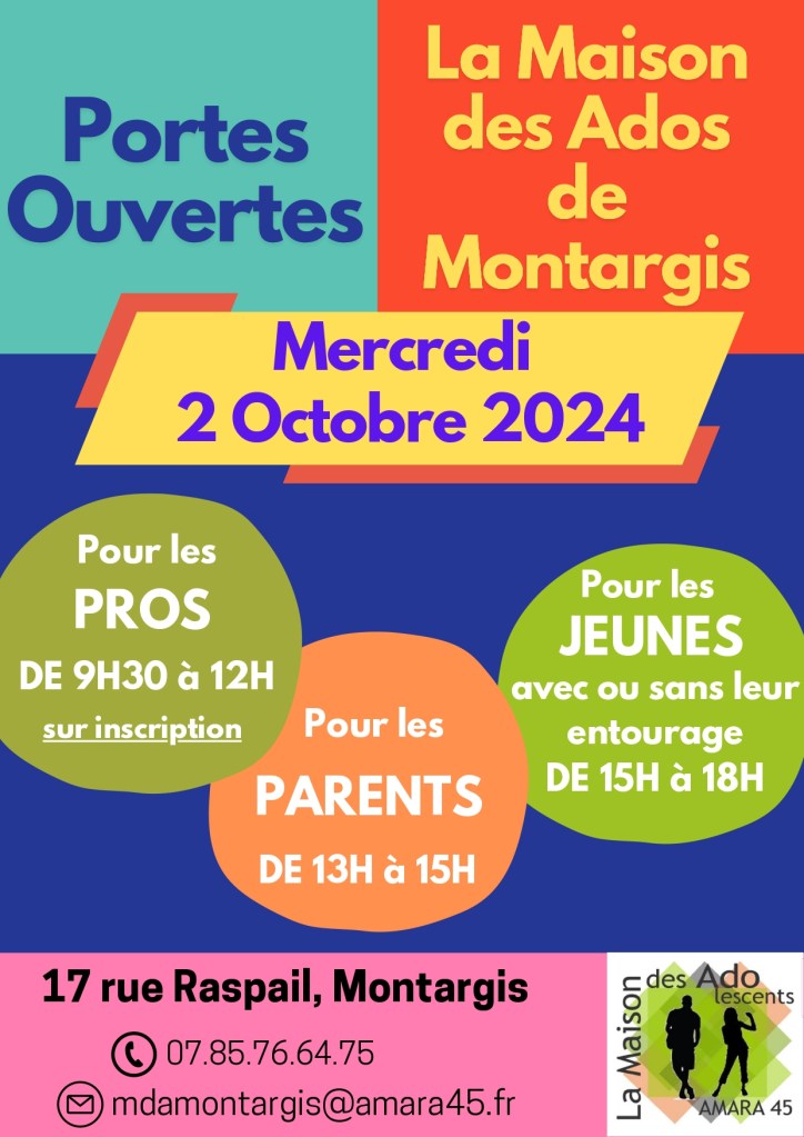 Les équipes de la Maison des Ados de Montargis, et de la Maison des Ados d’Orléans, ouvriront grand les portes, toute la journée du mercredi 2 octobre.