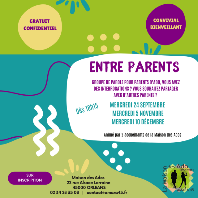 La Maison des Ados d’Orléans vous propose un groupe de parole entre parents, un moment pour souffler, échanger, poser des mots sur ce que vous vivez et repartir avec des pistes, des idées… et un peu de réconfort.