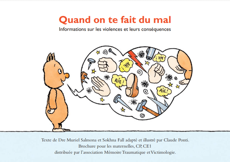 L’association Mémoire Traumatique et Victimologie met à disposition de précieuses brochures pour aborder la question des violences, de la mémoire traumatique. L’une s’adresse aux adolescents et jeunes adultes, l’autre, illustrée par Claude Ponti, s’adresse aux enfants.